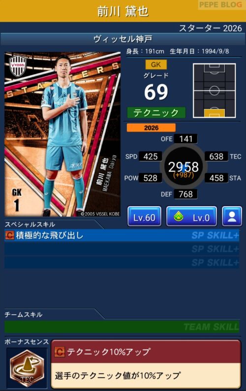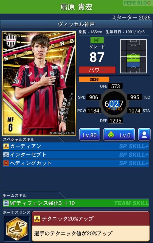 2026シーズン(2026/02/06時点)の最新データを反映した選手カードです。