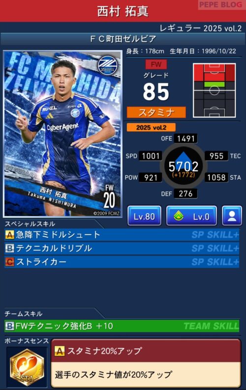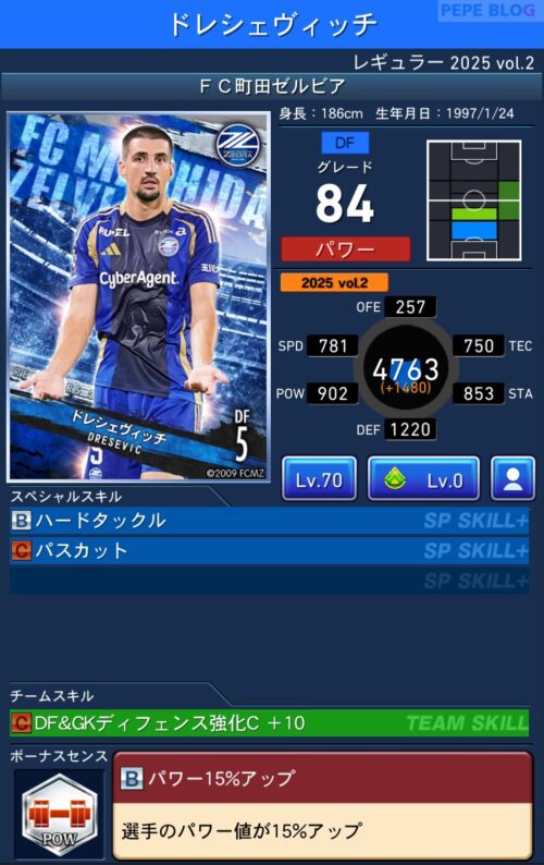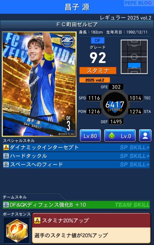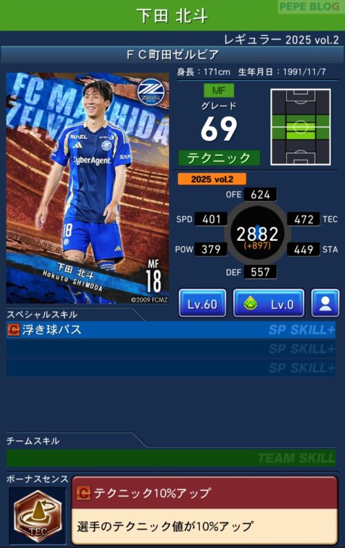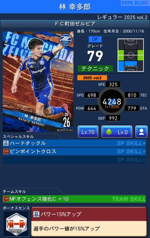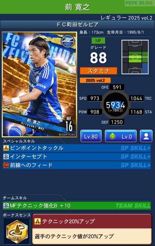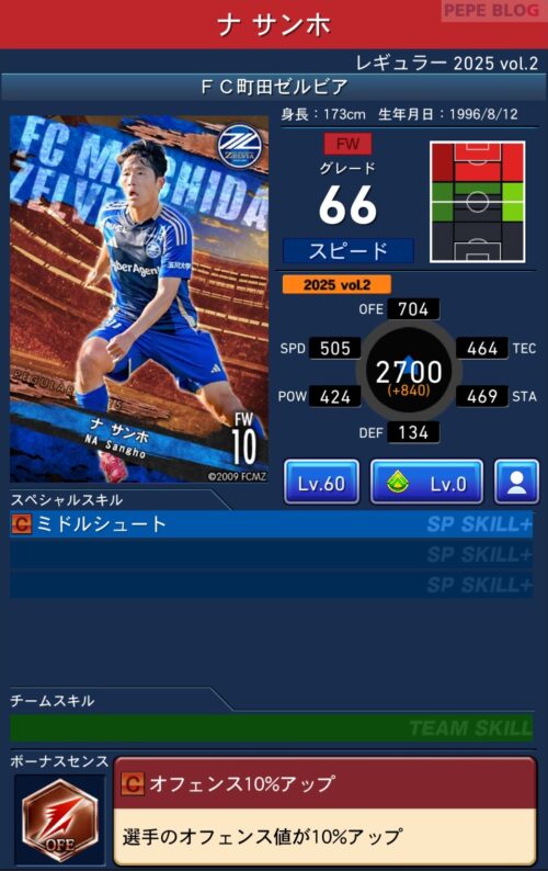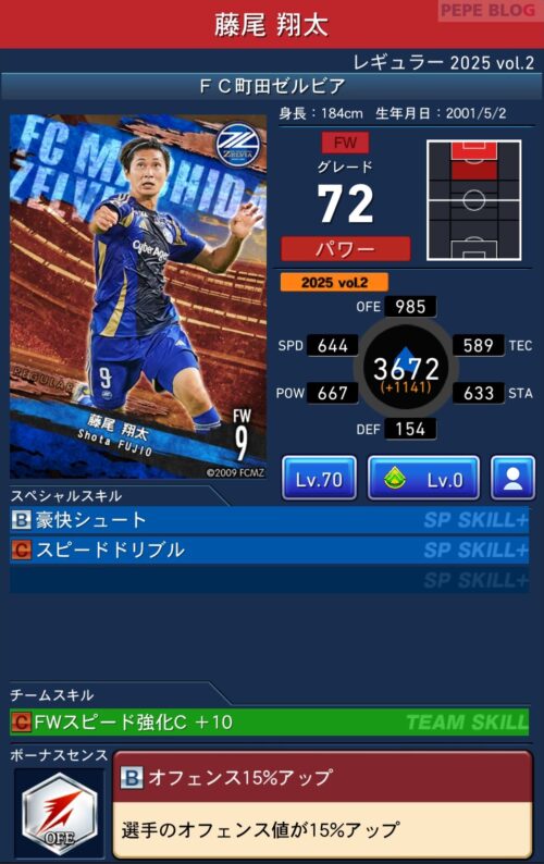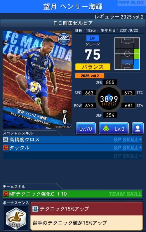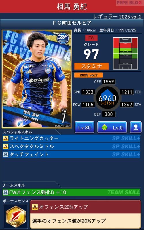 2025年9月19日時点の登録選手情報を反映し、最新データに基づいて所属クラブ、ポジション、スキル等の各種パラメータを更新した選手カードとなります。