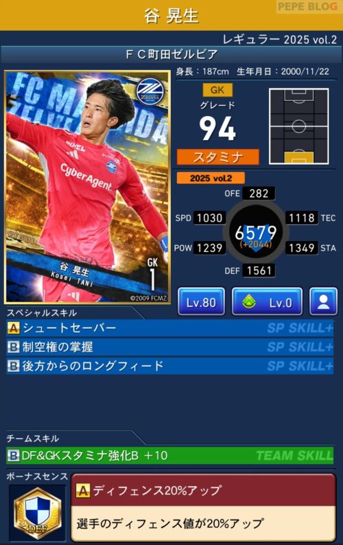 GK:グレード94 谷 晃生