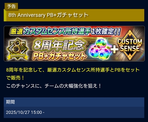 8周年を記念して、厳選カスタムセンス所持選手とPBをセットで販売!