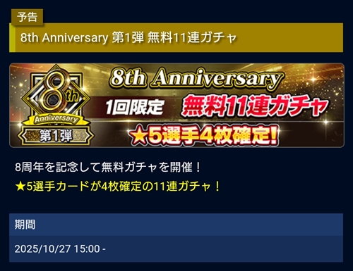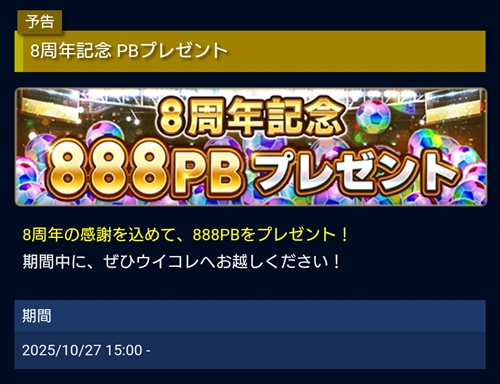 ウイコレの8周年を祝う、「8th Anniversary FEST」が2025年10月27日メンテナンス終了後より開催されます。