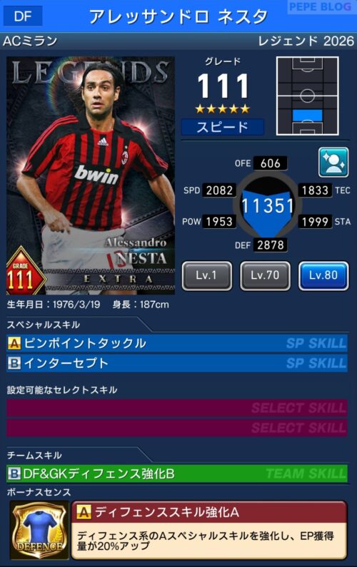 DF:☆5 グレード111 アレッサンドロ ネスタ