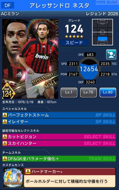 ウイコレレジェンドシリーズ2025に「アレッサンドロ ネスタ」が登場しました。