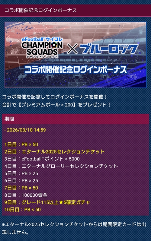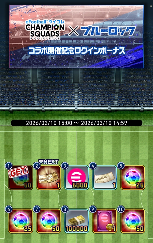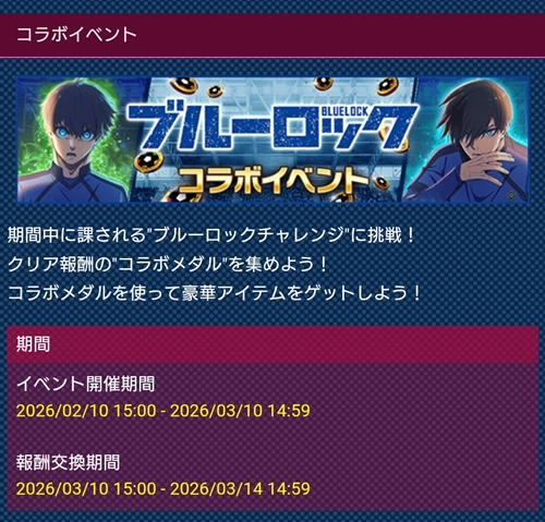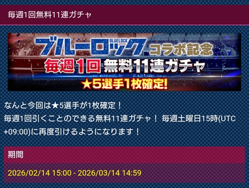 ウイコレでは2026/02/10より、「ブルーロックコラボキャンペーン」が開催されています。