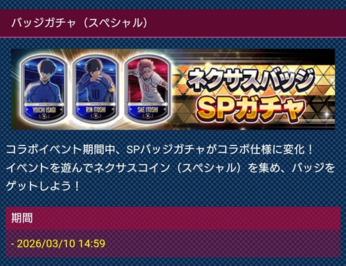 コラボイベント期間中、SPバッジガチャがコラボ仕様に変化!