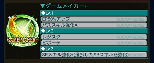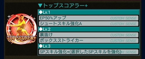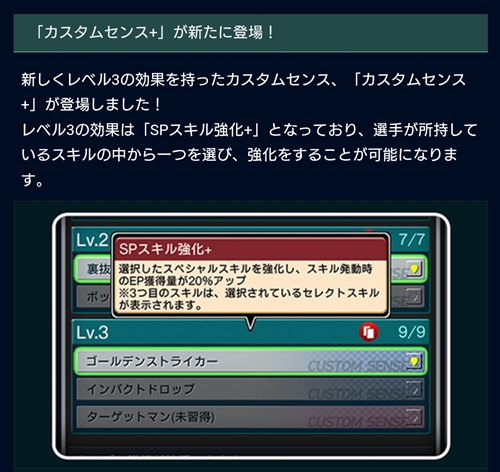 レベル3の効果は「SPスキル強化+」となっており、選手が所持しているスペシャルスキル、セレクトスキルの中から一つを選び、そのスキルを強化することが可能となっています。