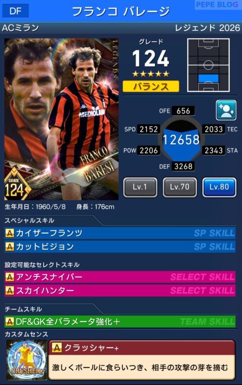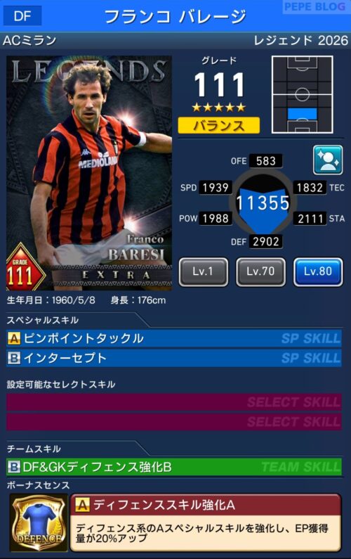 参考【ウイコレ】レジェンド2025 フランコバレージ登場!