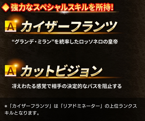 ※「カイザーフランツ」は「レジェンド2025 フランコ バレージ」で初めて搭載されたスキルです。