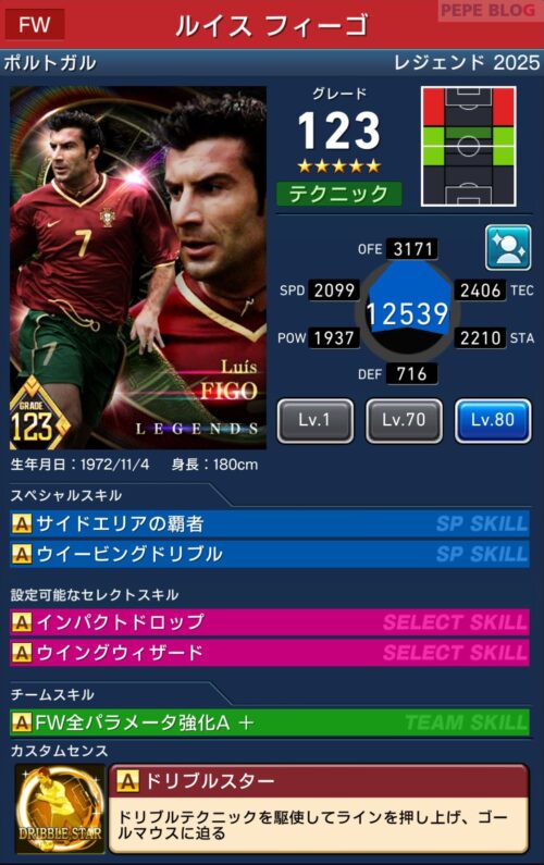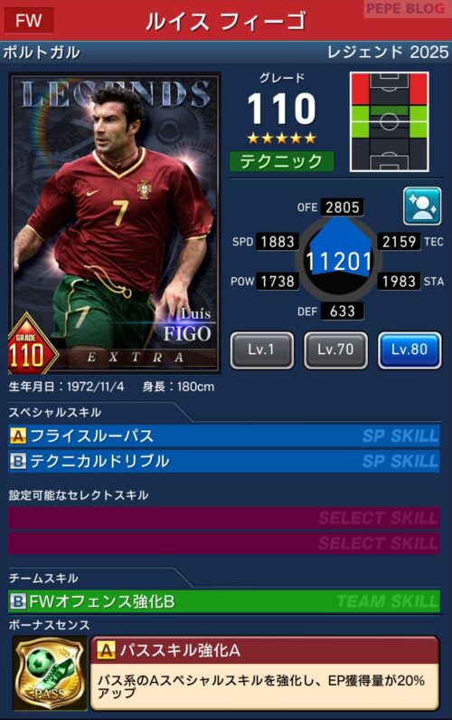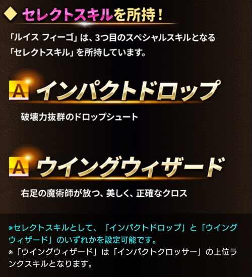 「ルイス フィーゴ」は、3つ目のスペシャルスキルとなる「セレクトスキル」を所持しています。
