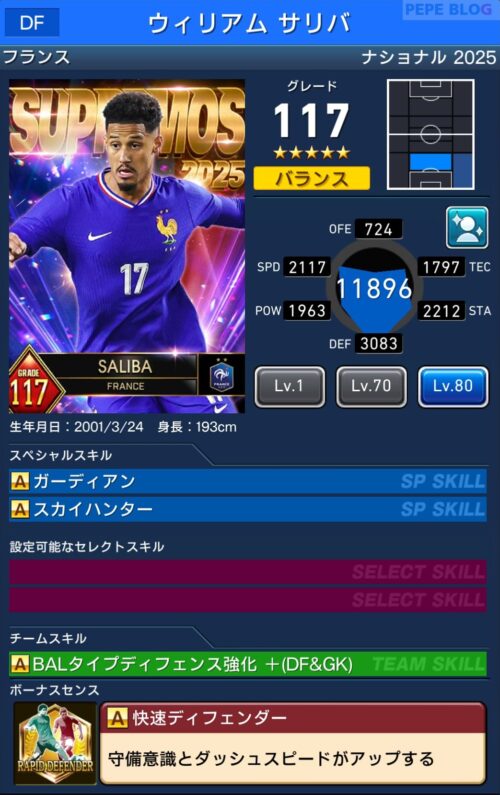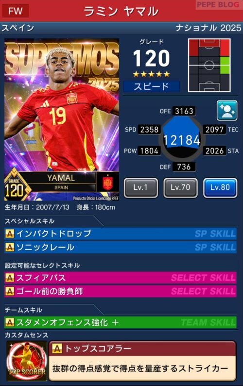 参考【ウイコレ】ナショナル2024 SUPREMOS登場!