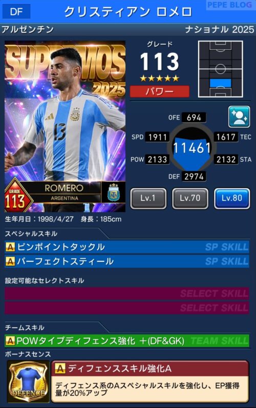 DF:☆5 グレード113 クリスティアン ロメロ
