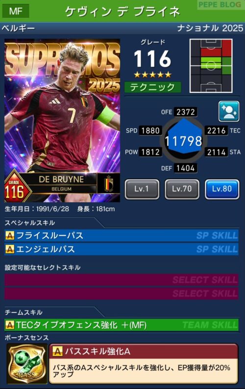 MF:☆5 グレード116 ケヴィン デ ブライネ