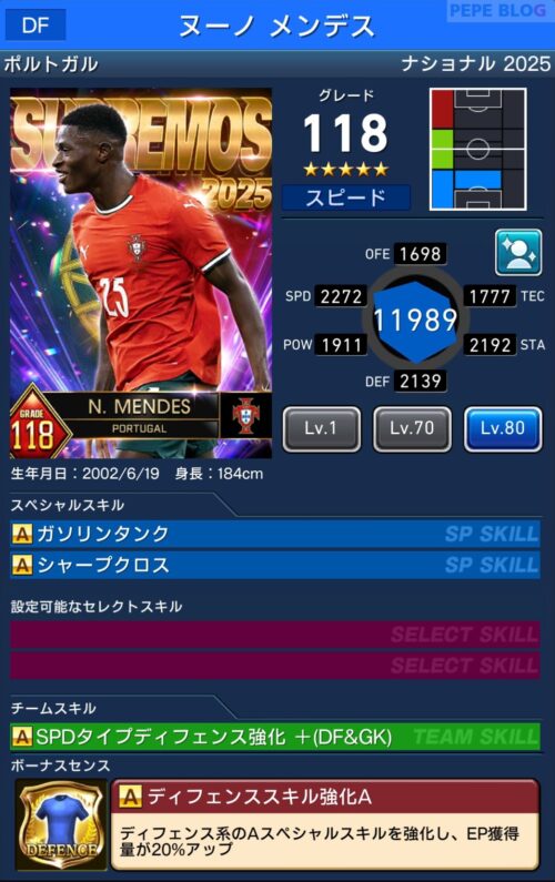 DF:☆5 グレード118 ヌーノ メンデス