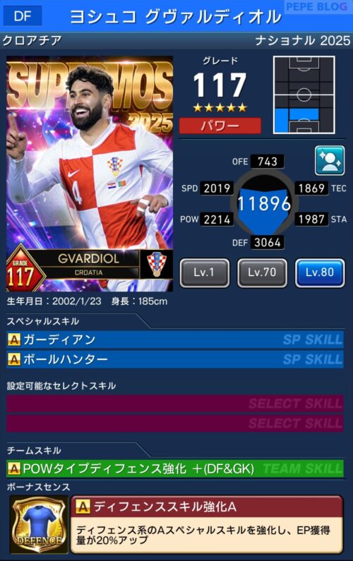 DF:☆5 グレード117 ヨシュコ グヴァルディオル