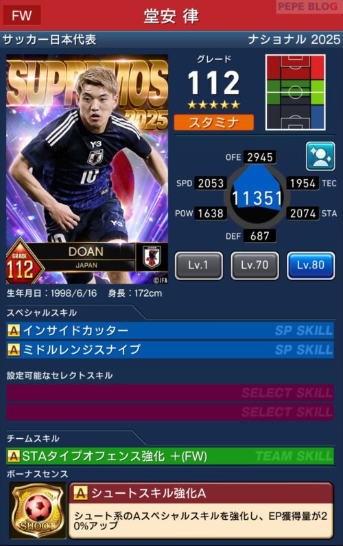 FW:☆5 グレード112 堂安 律