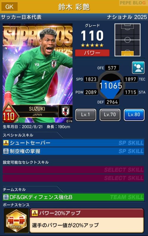 GK:☆5 グレード110 鈴木 彩艶