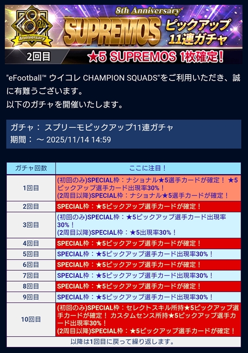 SUPREMOSナショナル2025ピックアップガチャにて入手することができます。