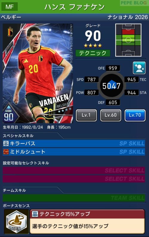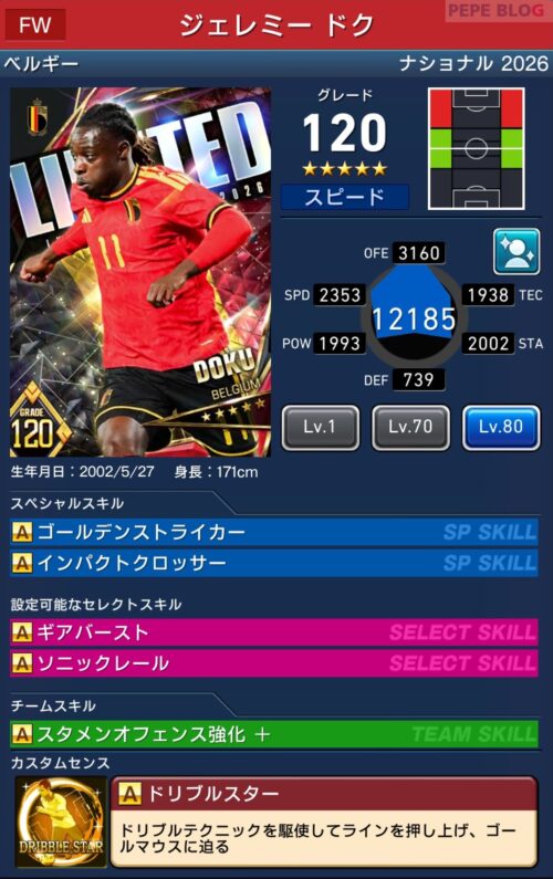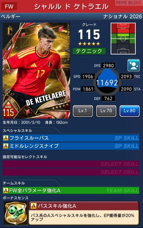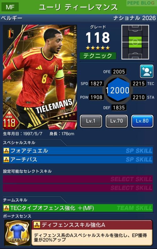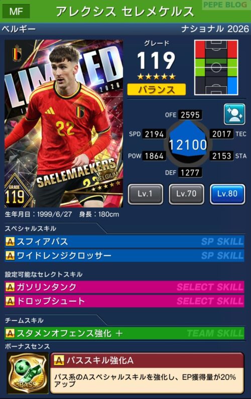 参考【ウイコレ】ナショナルシリーズ2025 ベルギー代表登場!