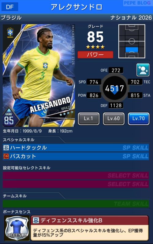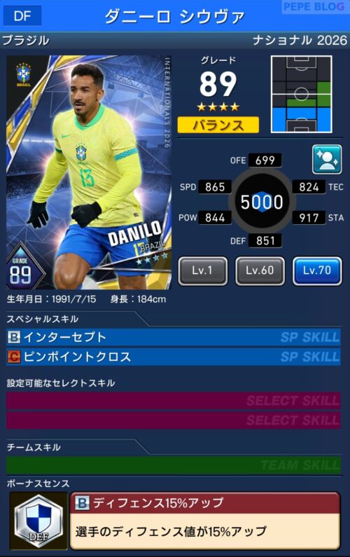 - 2.3 DF:☆4 グレード89 ダニーロ シウヴァ