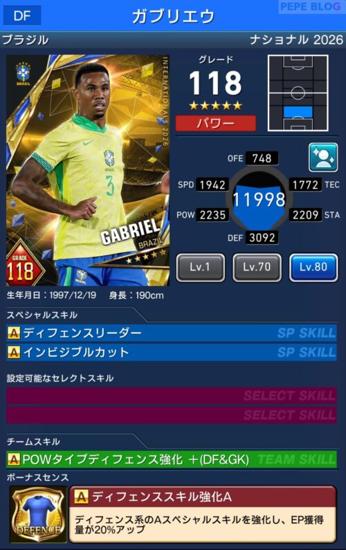 - 2.14 FW:☆5 グレード114 ガブリエル マルティネッリ