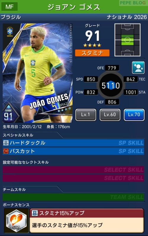 - 2.9 MF:☆4 グレード91 ジョアン ゴメス