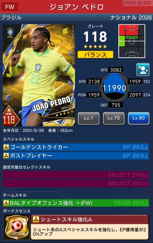 - 2.12 FW:☆5 グレード118 ジョアン ペドロ