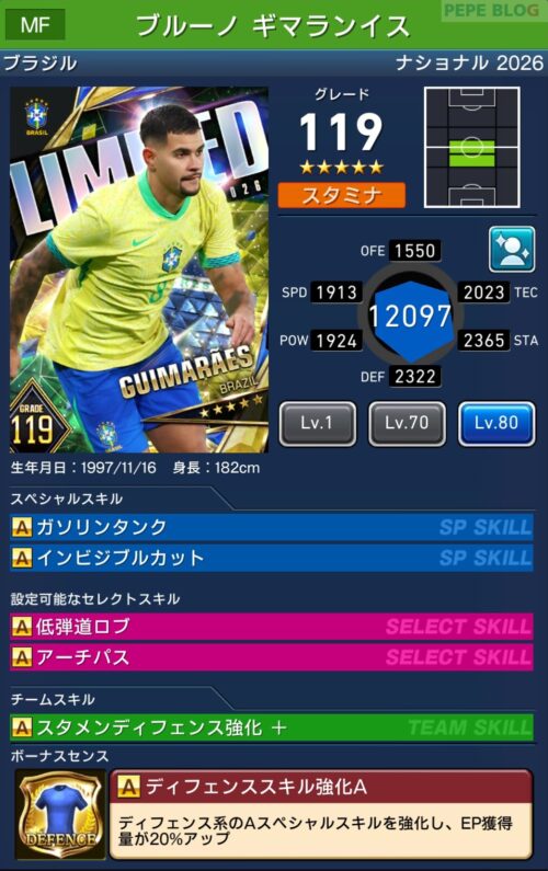 - 2.6 MF:☆5 グレード119 ブルーノ ギマランイス