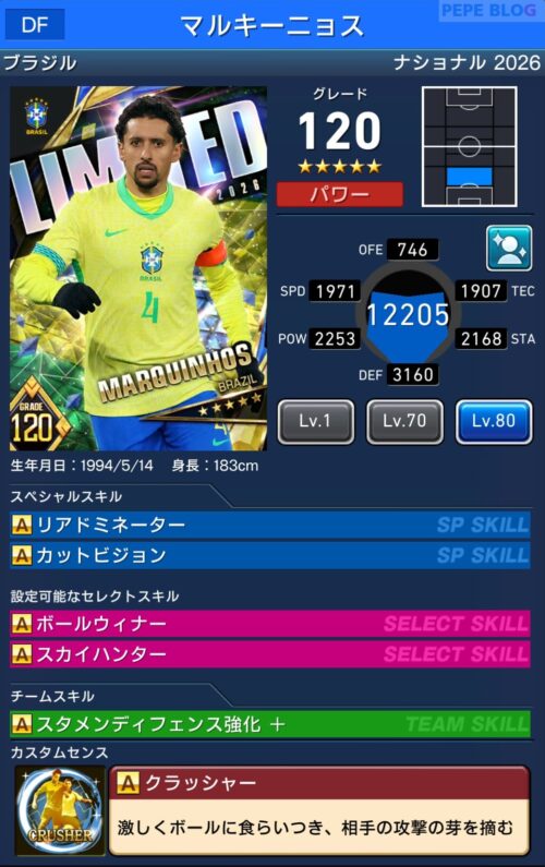 参考【ウイコレ】ナショナルシリーズ2025 ブラジル代表登場!