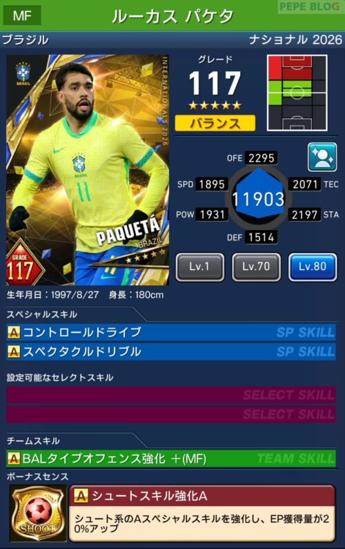 - 2.7 MF:☆5 グレード117 ルーカス パケタ