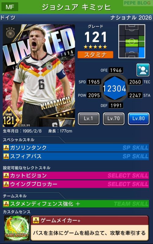 - 2.9 MF:☆5 グレード121 ジョシュア キミッヒ