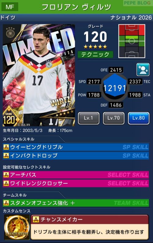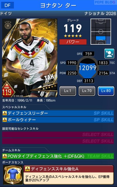 参考【ウイコレ】ナショナルシリーズ2025 ドイツ代表登場!