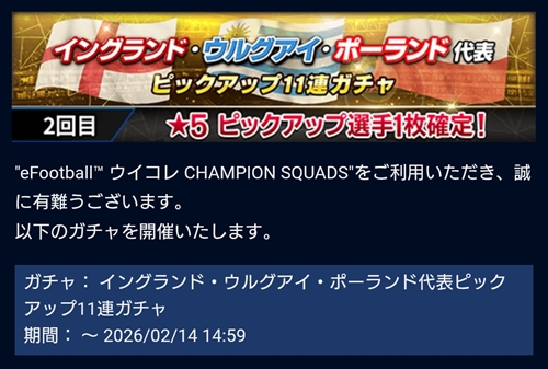 イングランド・ウルグアイ・ポーランド代表ピックアップ11連ガチャ開催中
