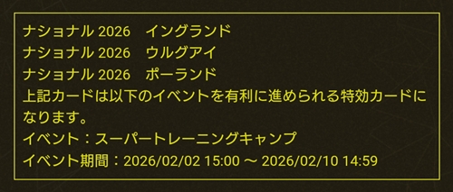 2026年2月開催の「SUPER TRAINING CAMP」の特効カードとなっています。