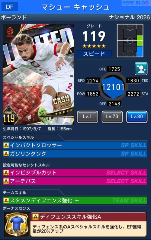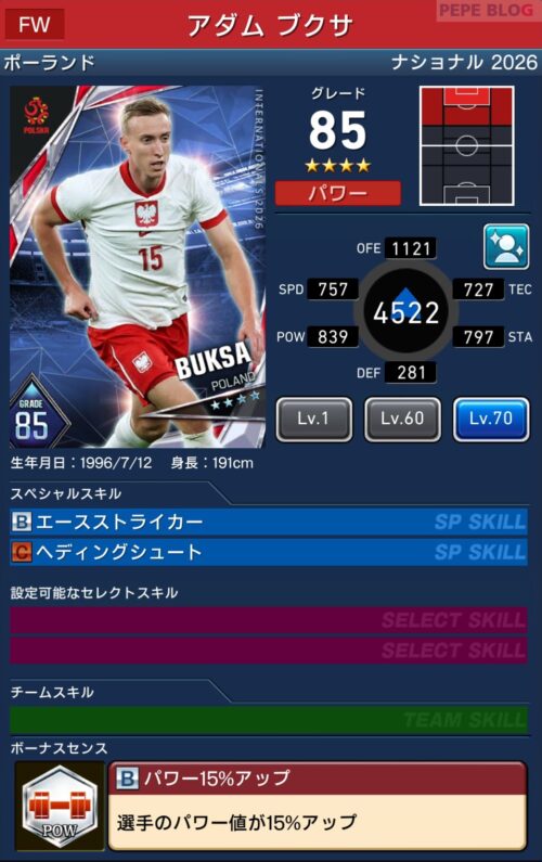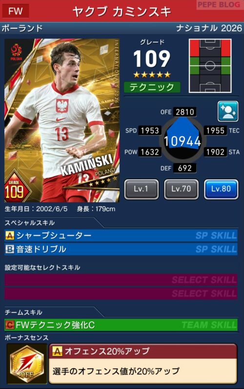 参考【ウイコレ】ナショナルシリーズ2025 ポーランド代表登場!