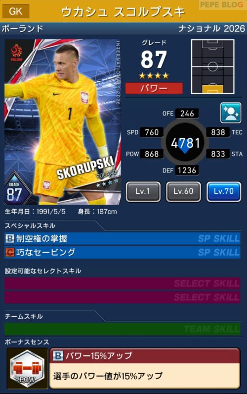 GK:☆4 グレード87 ウカシュ スコルプスキ