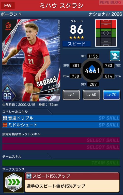 - 2.1 GK:☆4 グレード87 ウカシュ スコルプスキ
