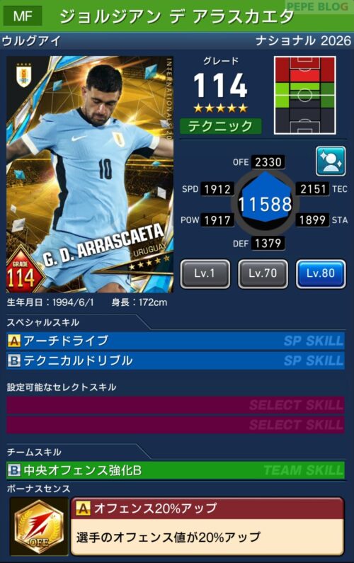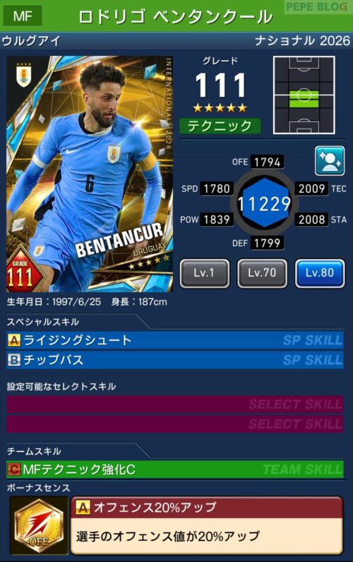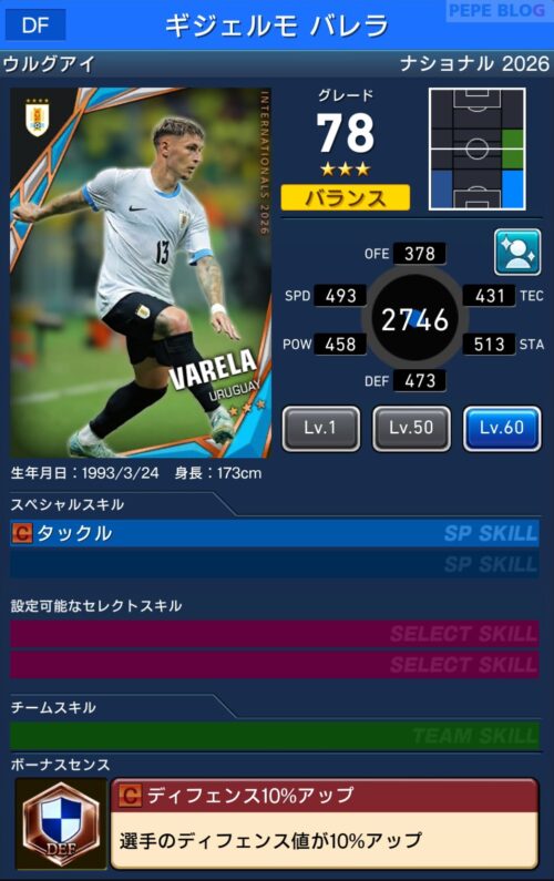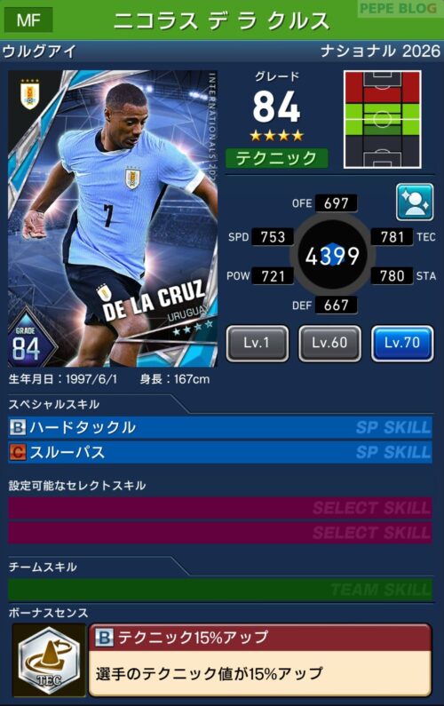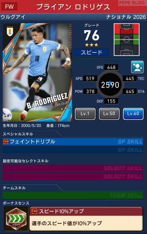 参考【ウイコレ】ナショナルシリーズ2025 ウルグアイ代表登場!
