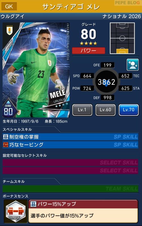 GK:☆4 グレード80 サンティアゴ メレ