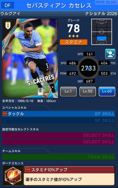 - 2.7 DF:☆3 グレード78 セバスティアン カセレス