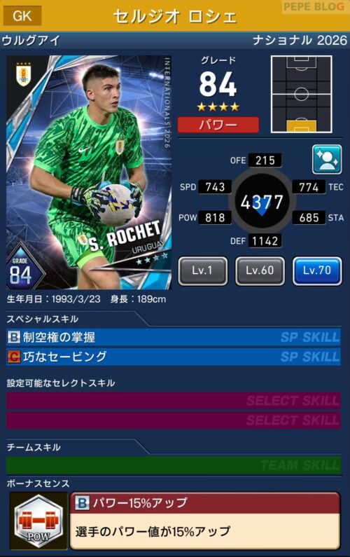 - 2.1 GK:☆4 グレード84 セルジオ ロシェ