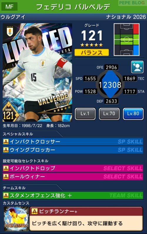 - 2.10 MF:☆5 グレード121 フェデリコ バルベルデ