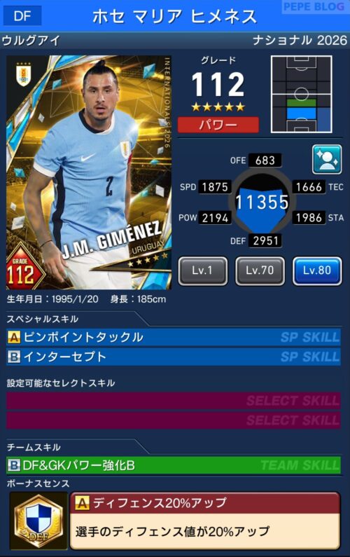 - 2.4 DF:☆5 グレード112 ホセ マリア ヒメネス