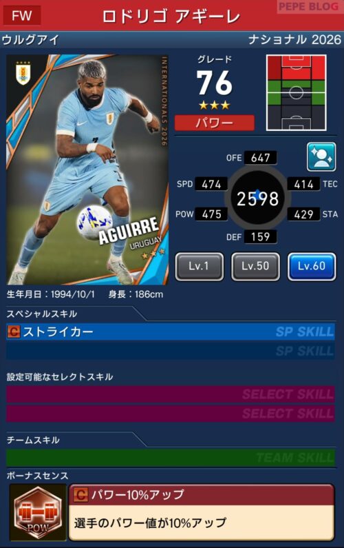 - 2.19 FW:☆3 グレード76 ロドリゴ アギーレ