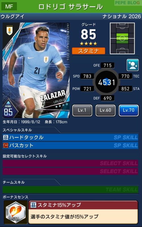- 2.14 MF:☆4 グレード85 ロドリゴ サラサール
