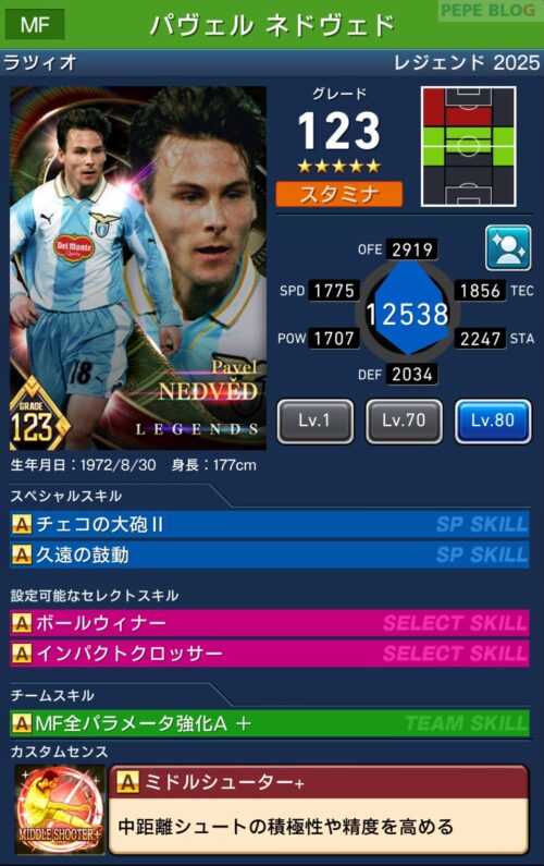 ウイコレレジェンドシリーズ2025に、「パヴェル ネドヴェド」が登場しました。