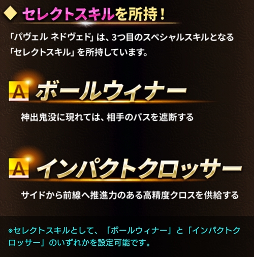 「パヴェル ネドヴェド」は、3つ目のスペシャルスキルとなる「セレクトスキル」を所持しています。