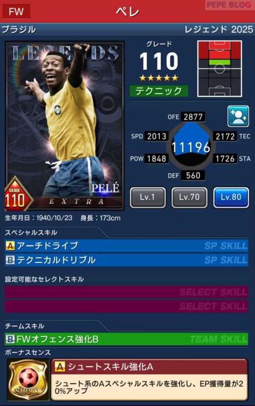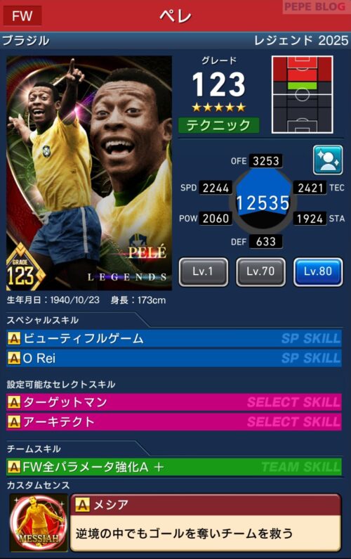 ウイコレレジェンドシリーズ2025に「ペレ」が登場しました。