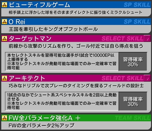 「O Rei」は「ゴールデンストライカー」の上位ランクスキルとなります。