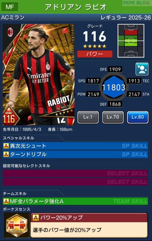 - 2.13 MF:☆5 グレード116 アドリアン ラビオ