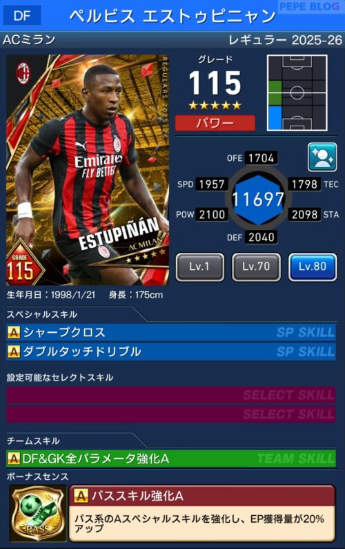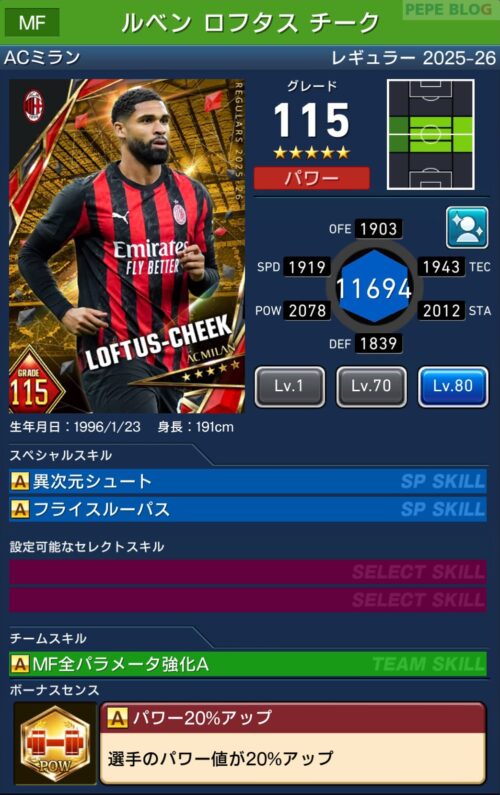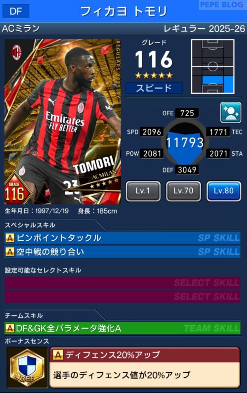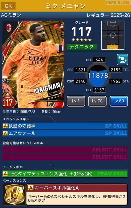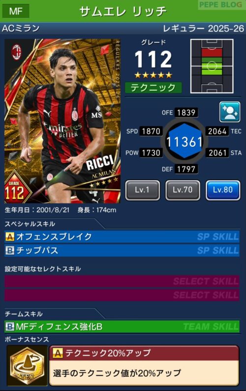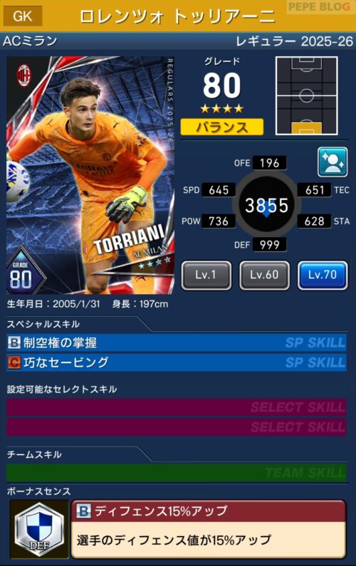 - 2.2 GK:☆4 グレード80 ロレンツォ トッリアーニ